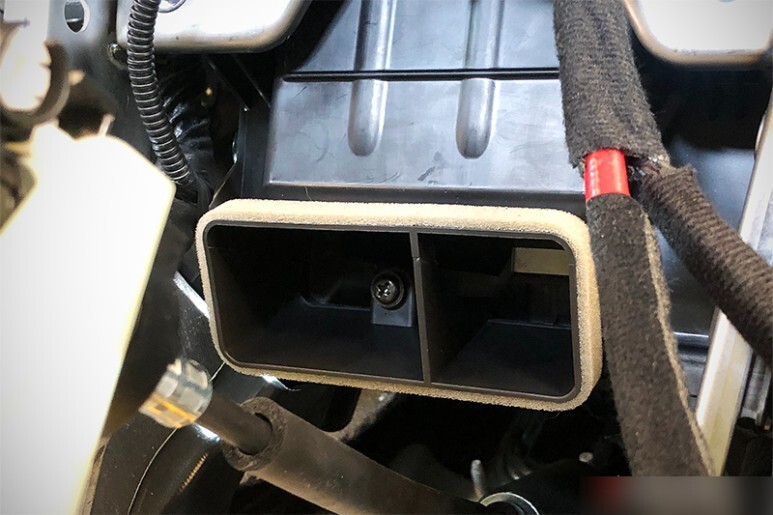 트림을 교환 전, 1열에서 타고 나오는 바람을 2열에 불어줄 덕트를 장착합니다. 볼트로 단단히 고정되는 방식입니다.