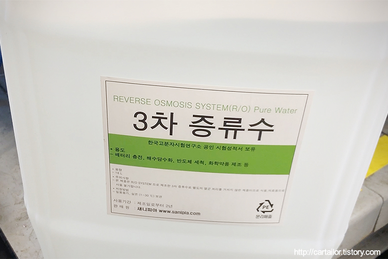 냉각계통을 여러번 순환시켜 줄 대용량 증류수를 여러통 준비합니다.